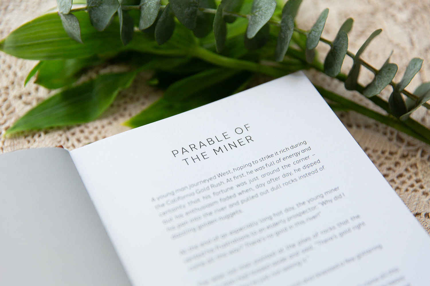 The concept behind this journal comes from the tale of a young miner during the California Gold Rush who got frustrated when his pan turned up only dull rocks instead of dazzling nuggets.